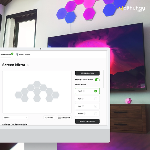 Trải nghiệm trò chơi sống động như thật. Đồng bộ hóa các hiệu ứng màu sắc rực rỡ trên tất cả các thiết bị Nanoleaf và Razer Chroma của bạn khi bạn chơi game! Chọn hoạt ảnh màu sắc rực rỡ, phản chiếu màn hình xung quanh hoặc thậm chí là phản ứng thời gian thực từ các sự kiện trong trò chơi!