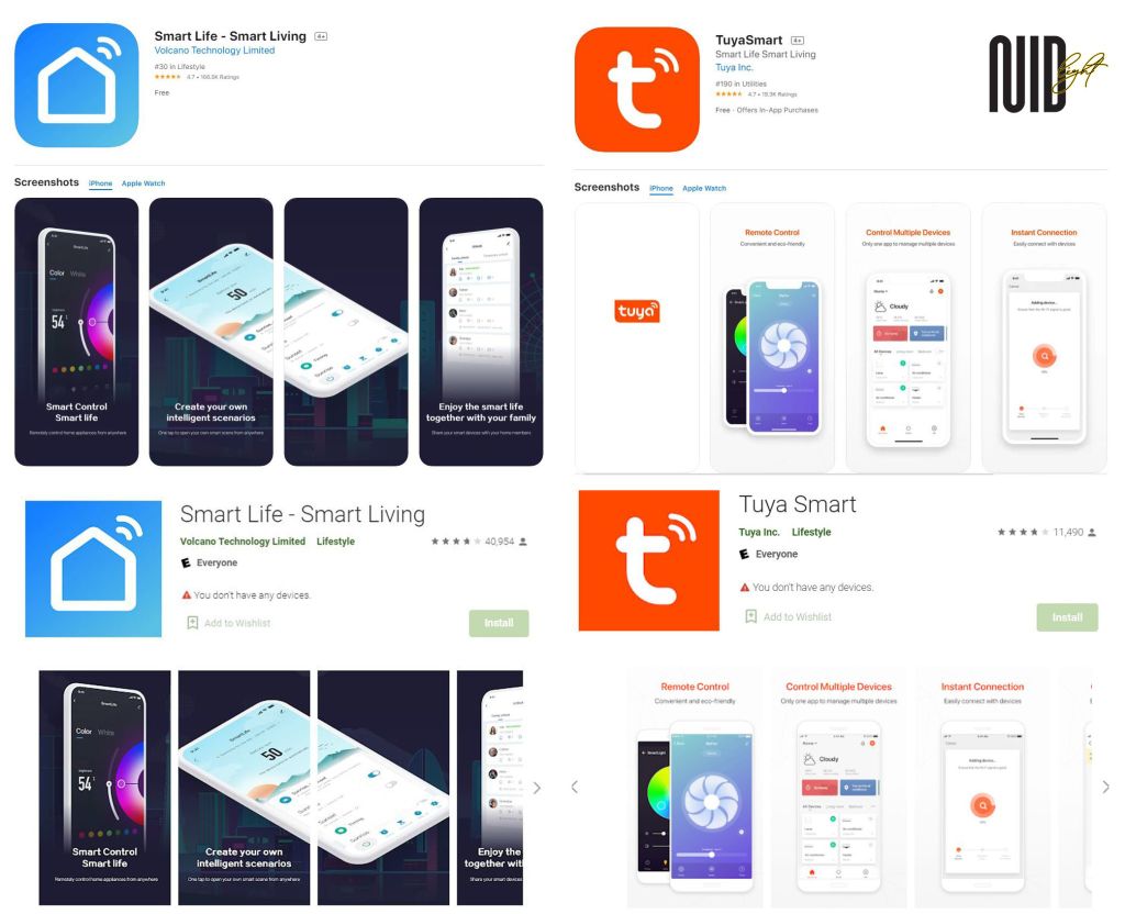 - Bước 2: Tải app "Smart Life" hoặc "Tuya Smart" trên iOs/Android.