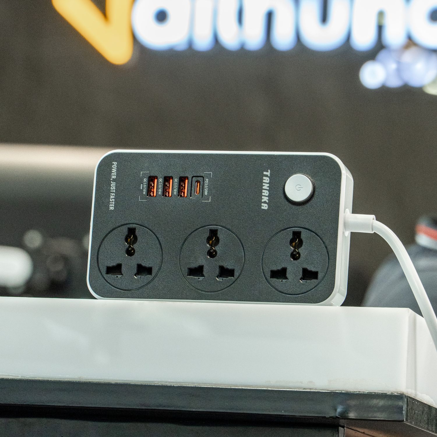 Ổ Cắm Điện Tanaka TNK-OD4323 – Sạc Nhanh PD 20W & QC 3.0, 3 Ổ Cắm + 4 Cổng USB, Công Suất 2500W