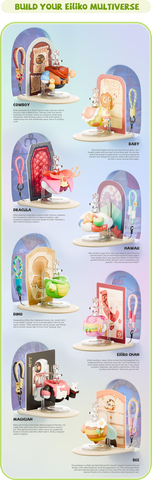 Mỗi con Eiliko đều đi kèm với một móc treo trưng bày và một thẻ câu chuyện độc đáo, tiết lộ khoảnh khắc tỏa sáng và câu chuyện riêng của từng nhân vật.