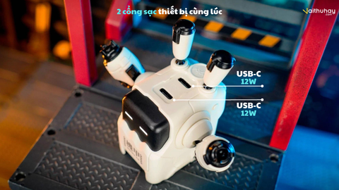 Thiết kế lấy cảm hứng từ Robot MECHA Công nghệ GaN tích hợp vào dock sạc nhanh Thiết kế sci-fi vũ trụ, nhìn ngầu lòi và muốn sỡ hữu. Hỗ trợ sạc cùng lúc 2 thiết bị USB-C Tính năng an toàn nâng cao Bảo hành 12 tháng