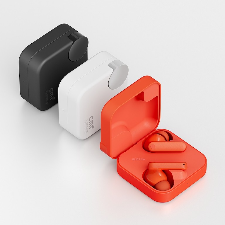 CMF Buds 2a có ba màu — Xám đậm, Xám nhạt và cùng tông màu Cam như CMF Phone 2 Pro. Tai nghe nhét tai có thiết kế nhét trong với lớp hoàn thiện mờ / bóng kép và khả năng chống bụi và nước IP54. Hộp tai nghe dường như không có xếp hạng IP nhưng có một lỗ để đeo dây đeo.