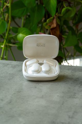 Vòng đeo cổ nhẹ nhàng (~8 g mỗi bên), giữ gọn gàng nhờ nam châm hút giữa hai housing, chống rối – rất phù hợp khi di chuyển, tập luyện