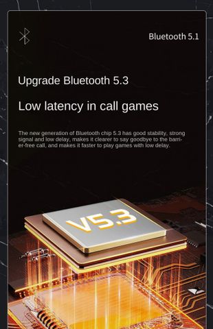 Trang bị chip Bluetooth 5.3 thế hệ mới, tai nghe mang lại kết nối ổn định, tín hiệu mạnh, giúp cuộc gọi rõ ràng, không gián đoạn. Độ trễ thấp tối ưu cho chơi game mượt mà, phản hồi nhanh hơn, trải nghiệm vượt trội!