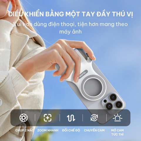 Chiếc tay cầm nhỏ gọn này không chỉ đơn thuần là một phụ kiện – nó là công cụ mở cánh cửa sáng tạo cho bất kỳ ai cầm điện thoại trên tay. Nhờ thiết kế công thái học vừa tay, lực hút từ tính siêu mạnh và khả năng điều khiển thông minh như một chiếc máy ảnh thật sự, bạn có thể quay, chụp, zoom, chuyển camera chỉ bằng một tay – nhanh, gọn, chính xác.