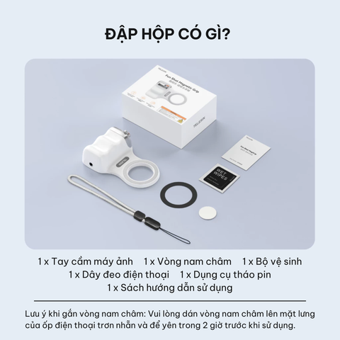 Không cần mất thời gian set-up, không sợ tay run hay khung hình lệch góc – chỉ cần giơ máy lên, giữ chặt bằng lực hút từ tính siêu an toàn, và chụp. Từng khung hình bạn ghi lại sẽ trở nên chỉn chu, sống động và đầy cảm xúc – sẵn sàng để chia sẻ hoặc lưu giữ mãi mãi.
