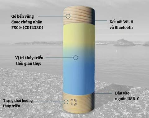 Hiển thị thủy triều theo thời gian thực từ hơn 6.000 bãi biển toàn cầu: Tide.lamp sử dụng dữ liệu trực tiếp từ hơn 6.000 địa điểm ven biển trên toàn thế giới, cho phép bạn chọn bãi biển yêu thích và theo dõi mực nước biển lên xuống thông qua ánh sáng thay đổi. Thiết kế thủ công tinh tế từ vật liệu bền vững: Mỗi chiếc đèn được chế tác thủ công tại Cornwall, Anh Quốc, sử dụng gỗ được chứng nhận bền vững và nhựa tái chế, thể hiện cam kết của Tidelight đối với môi trường và quyền sửa chữa. Ứng dụng điều khiển thân thiện với người dùng: Thông qua ứng dụng Tidelight trên iOS hoặc Android, bạn có thể dễ dàng chọn bãi biển yêu thích, điều chỉnh độ sáng và thời gian chuyển đổi ánh sáng để phù hợp với nhịp sống của mình. Ánh sáng mô phỏng chu kỳ thủy triều một cách tinh tế: Ánh sáng của Tide.lamp thay đổi nhẹ nhàng theo chu kỳ thủy triều: khi thủy triều lên, ánh sáng xanh dương tăng dần; khi thủy triều xuống, ánh sáng chuyển sang tông vàng ấm, tạo cảm giác thư giãn và kết nối với biển cả. Hỗ trợ sức khỏe tinh thần và kết nối với thiên nhiên: Nhiều người dùng chia sẻ rằng Tide.lamp giúp họ cảm thấy thư giãn và gắn kết hơn với thiên nhiên, trở thành một phần trong thói quen chánh niệm hàng ngày.