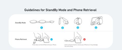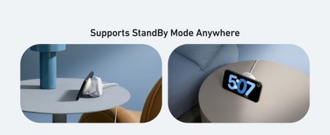 Anker MagGo được thiết kế với tinh thần thân thiện môi trường, sử dụng 75% vật liệu PCR (tái chế sau tiêu dùng), góp phần giảm thiểu tác động đến môi trường mà vẫn đảm bảo hiệu suất vượt trội. Để tận dụng tối đa chế độ StandBy trên iPhone, chỉ cần gập trạm sạc thành giá đỡ ở chế độ ngang, mang lại góc nhìn tối ưu khi sử dụng. Khi tháo điện thoại, đặt tay lên đế sạc và kéo nhẹ xuống để tách ra dễ dàng, đảm bảo thao tác thuận tiện và an toàn cho thiết bị của bạn.