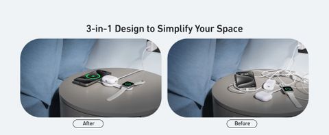 - Thiết kế 3 trong 1 tiện lợi: Sạc đồng thời iPhone, AirPods và Apple Watch, tối ưu không gian và giảm lộn xộn.