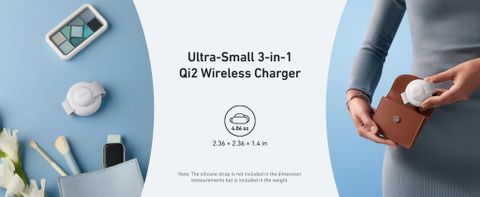 Trạm sạc không dây Qi2 3-trong-1 siêu nhỏ gọn từ Anker MagGo chỉ nặng 4.06 oz (khoảng 115g) và có kích thước 2.36 x 2.36 x 1.4 inch, dễ dàng mang theo mọi nơi. Lưu ý: dây đeo silicone không tính vào kích thước nhưng được bao gồm trong trọng lượng, mang đến sự tiện lợi mà vẫn giữ thiết kế tối giản và tinh tế.