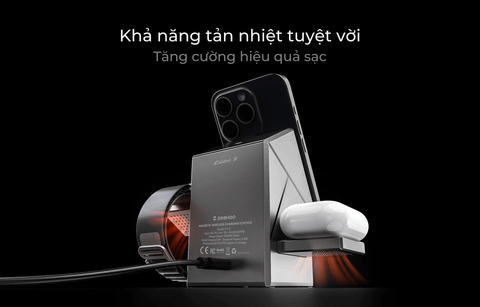 Bộ sạc không dây truyền thống có thể nóng lên, ảnh hưởng đến hiệu quả sạc và gây hại cho pin điện thoại của bạn. CubeTrick X giải quyết vấn đề này bằng chip làm mát thông minh và quạt tích hợp. Hệ thống thông minh này tản nhiệt hiệu quả, đảm bảo sạc điện thoại của bạn nhanh hơn, mượt mà hơn.