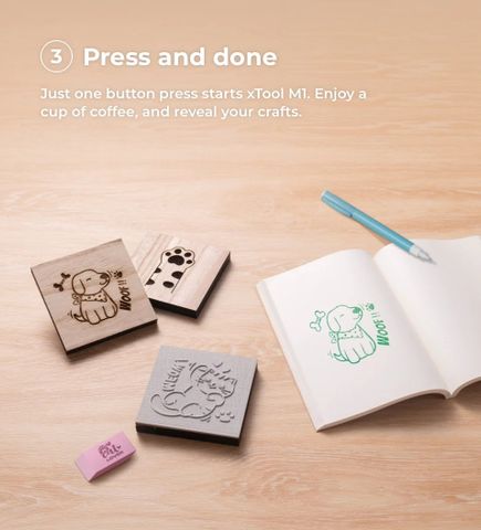 Máy cắt và khắc laser xTool M1 là máy làm quà tặng hoàn hảo cho các doanh nghiệp nhỏ hoặc sinh nhật / ngày lễ / đám cưới / gia đình / thú cưng / trang trí. Máy thủ công xTool M1 đi kèm với gói vật liệu có thể giúp bạn đạt được điều đó Tự làm với nhiều loại vật liệu. Bạn có thể khắc thủy tinh, cốc và các vật thể hình trụ khác bằng cách sử dụng RA2 Pro. Tấm đáy có thể tháo rời cũng hỗ trợ khắc chiều cao không giới hạn của vật liệu.
